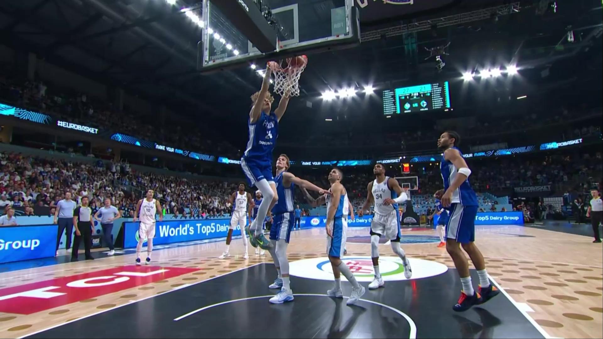 Dvě smeče Miikky Muurinena v zápase s Řeckem