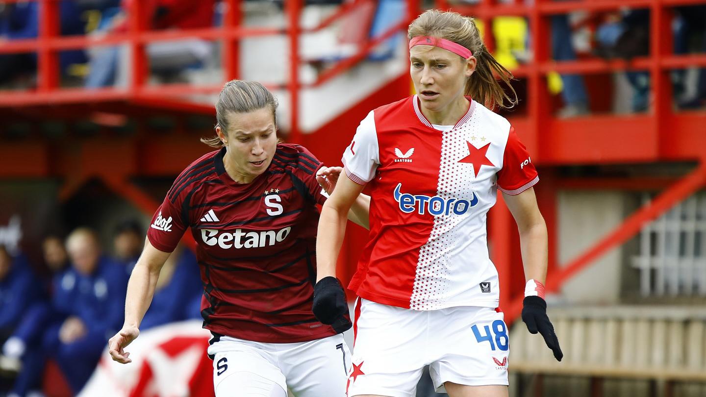 V derby pražských S a dvou nejlepších týmů ženské fotbalové Fortuna ligy porazila Sparta jasně Slavii 4:1 a upevnila si vedení v tabulce. Před druhou Slavií má po sedmém kole pětibodový náskok.