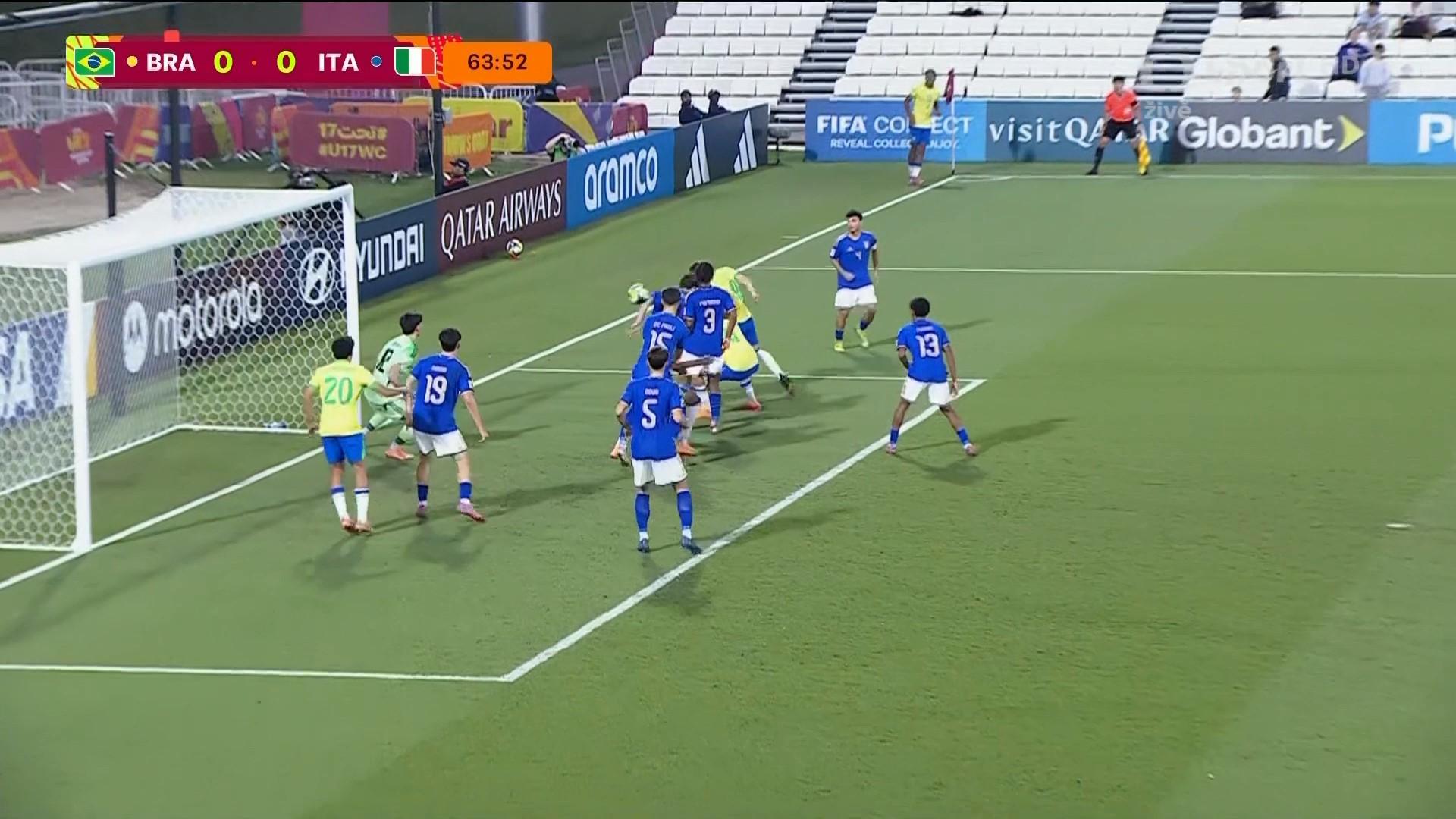 Výběr trenéra Fava Massimiliana početní výhodu k brance nevyužil. I přes velké italské šance nakonec míč do branky dostali Brazilci, avšak gól Felipea Moraise z 64. minuty neplatil kvůli ofsajdu.
