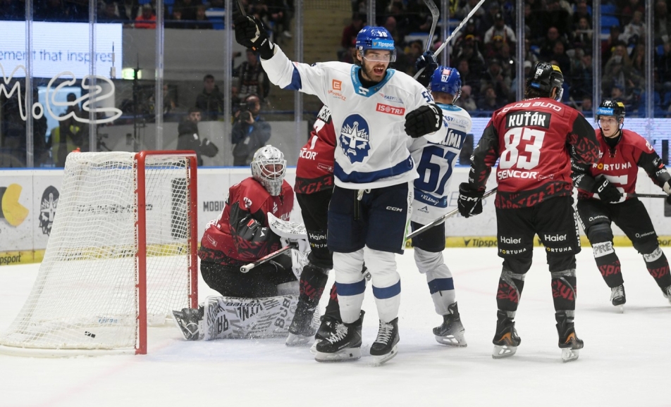 Branky a nahrávky: 8. Kohout (Nenonen, Šenkeřík), 12. Radil (Nenonen), 45. Radil (Miškář, McCormack), 65. Kevin Klíma z trest. střílení – 24. D. Zeman (O. Procházka, Weatherby), 35. J. Pytlík (J. Pérez, Kolmann), 38. J. Pérez (A. Musil, Zile). Rozhodčí: Kika, Cabák – Lhotský, Hynek. Vyloučení: 5:2. Využití: 1:1. Diváci: 3949.