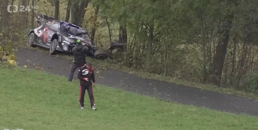 Jednačtyřicetiletý Ogier měl po páteční etapě v čele náskok jen šest desetin sekundy na Rovanperäho, hned v prvním dnešním testu ale o vedení přišel. Na druhém měřeném úseku "Keply", prvním ze čtyř na českém území, poté skončil se svou toyotou mimo trať a vypadl ze hry o vítězství. Opakovala se situace z loňska, kdy také na Středoevropské rallye skončil předčasně kvůli havárii.