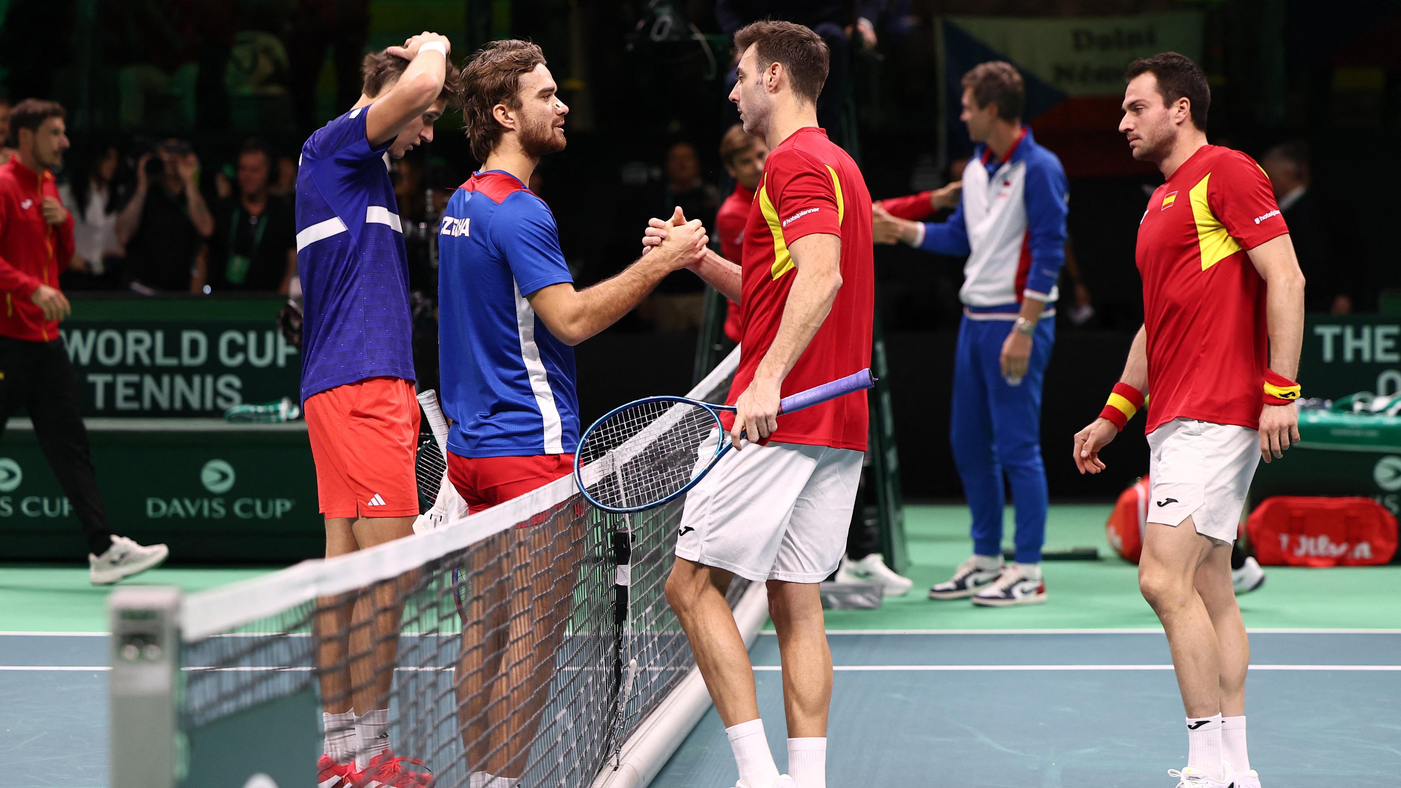 Čeští tenisté nezvládli ve čtvrtfinále Davisova poháru souboj se Španělskem a podlehli mu 1:2. V souboji týmových dvojek nejprve Jakub Menšík porazil Pabla Carreňa Bustu 7:5 a 6:4, v duelu týmových jedniček podlehl Jiří Lehečka Jaume Munarovi 3:6, 4:6. O postupujícím do semifinále rozhodovala čtyřhra, v níž Tomáš Macháč s Jakubem Menšíkem nestačili na dvojici Marcel Granollers, Pedro Martínez a prohráli po setech 6:7 (8:10) a 6:7 (8:10).