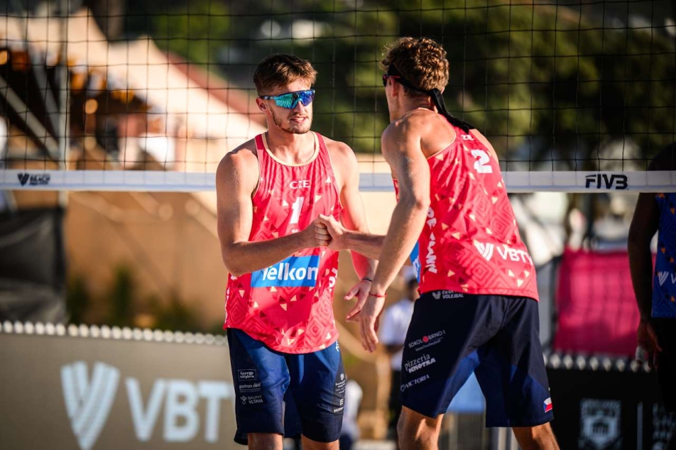 Češi nenavázali na vydařené boje v základní skupině, kde hladce přehráli Němce Lukase Pfretzschnera se Svenem Winterem a po třísetové bitvě také favorizované Brazilce Evandra a Arthura. Proti dalšímu jihoamerickému páru Trousil se Sedlákem skvěle začali, vyhráli prvních pět výměn a zejména díky účinnému útoku Trousila se ujali vedení.